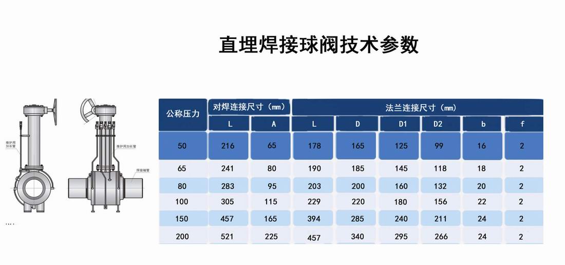 6、長桿直埋焊接球閥可以深埋地下,不用設置閥門井,操作者只需在地上用手柄或蝸輪傳動機構操作即可,非常方便。