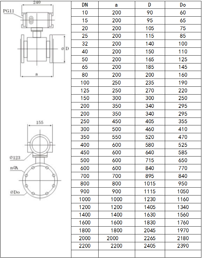 進(jìn)口污水電磁流量計(jì)結(jié)構(gòu)尺寸