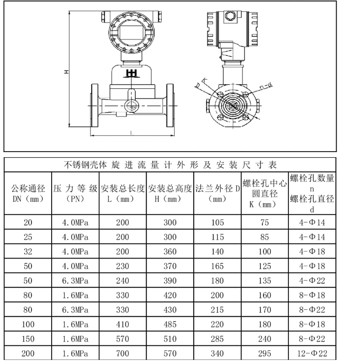 進口氣體流量計結構尺寸