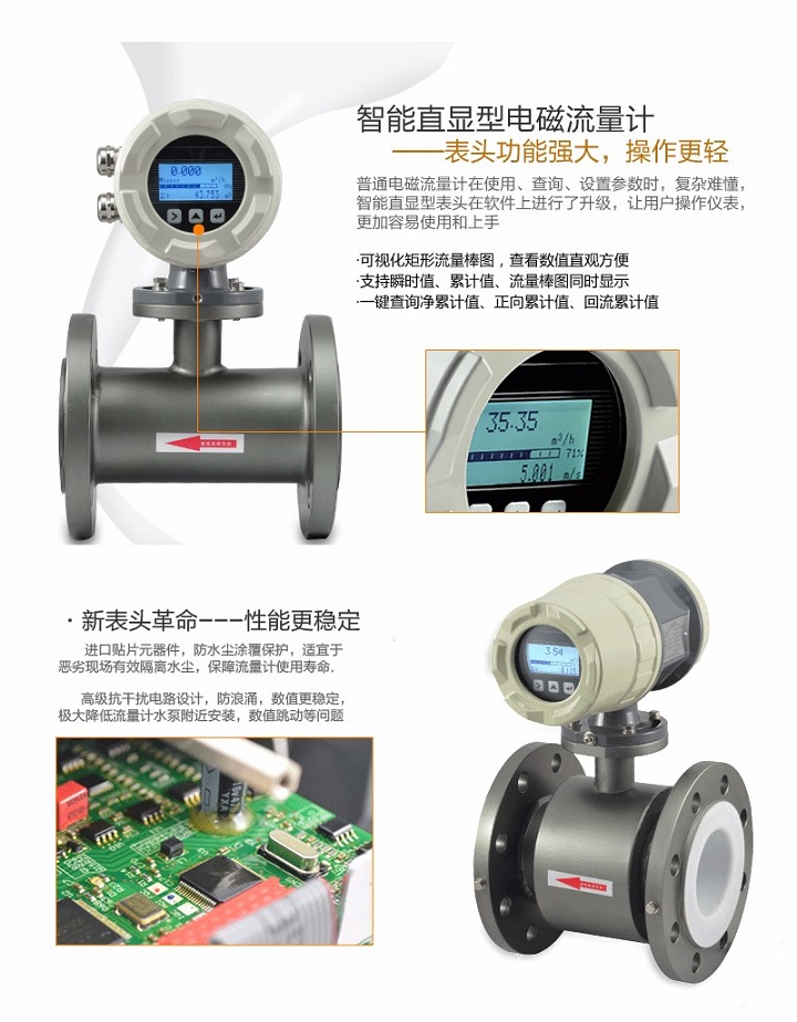 進口分體式電磁流量是一種根據法拉第電磁感應定律來測量管內導電介質體積流量的感應式儀表,采用單片機嵌入式技術,實現數字勵磁,同時在電磁流量計上采用CAN現場總線,屬國內首創,技術達到國內領先水平。