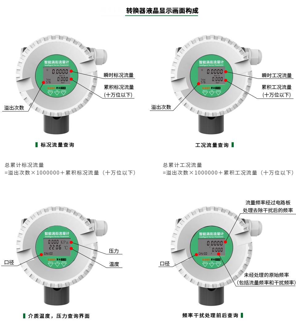 2、一體式溫度壓力雙補償,可直接在表頭上讀取補償后的瞬時流量和累計流量,溫度,壓力等數(shù)據(jù);